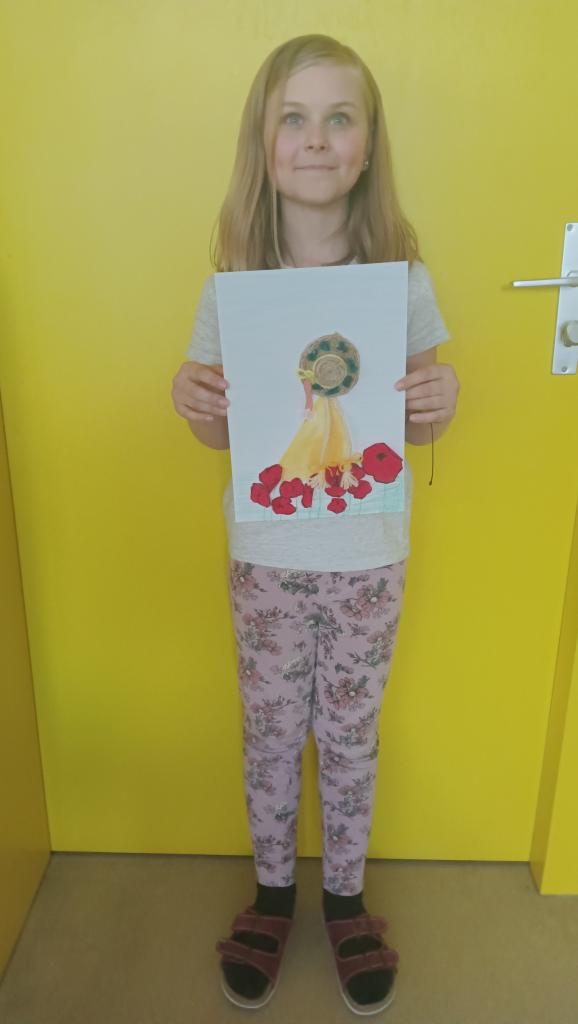 Koláž -dívka s kloboukem