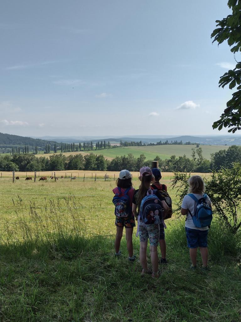 Pondělní výlet do Chospílu Úterní návštěva MŠ v Novém Kramolínu a sladká odměna Středeční výlet do Poběžovic s kvízem Čtvrteční výlet na Díly
