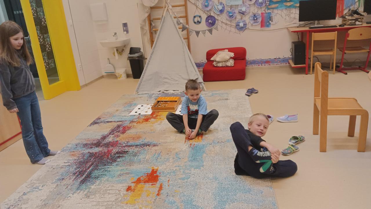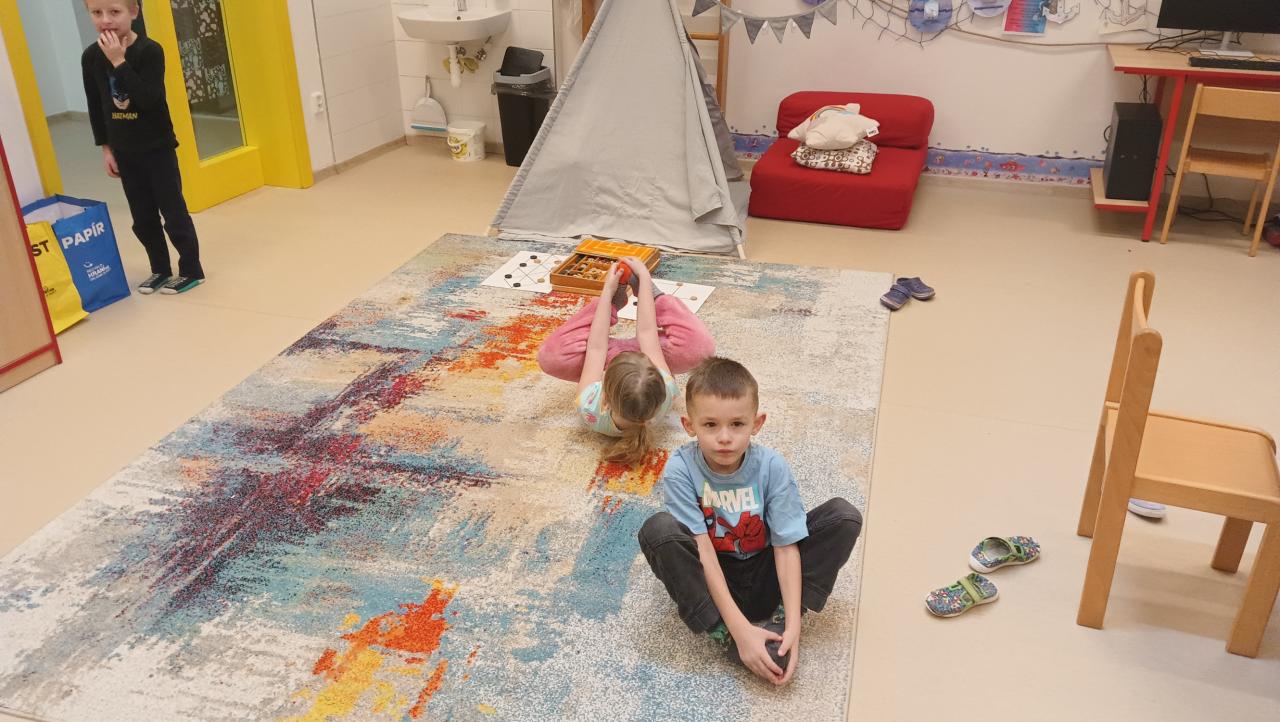 Ranní pohádky, stolní hry, fotbálek, masáž nohou, rozcvička, tvoření